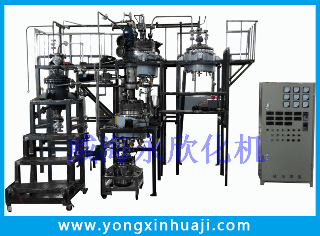 主體接觸物料材料為1Cr18Ni9Ti不銹鋼,攪拌槳葉的形式為推進式,電機為普通直流電機;常規釜蓋開口:攪拌口配磁力攪拌器,氣相口配針形閥(進、排氣、抽真空用),液相口配針形閥及釜內插底管(反應過程中可用來取樣或上出料用),加料口配絲堵,測控溫口配保護管及鉑電阻,壓力表安全爆破口配壓力表及安全防爆裝置,釜內冷卻盤管進、出口配水咀。